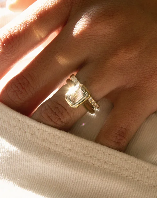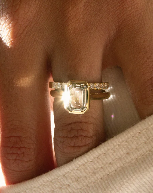 A design for those wanting a bold, striking, and timeless piece. Beautiful all on its own, but also pairs well with our Belenos Asscher Cut Band & Belenos Emerald Cut Band.