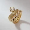 At the heart of the design is the offset Boussole setting, ready to be set with your choice of diamond or gemstone. Each ring is lovingly set with four pear shaped claws at north, south, east, and west points, the cardinal directions of a Boussole, or compass.