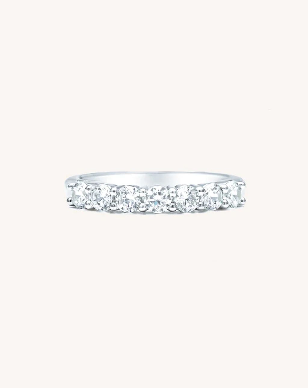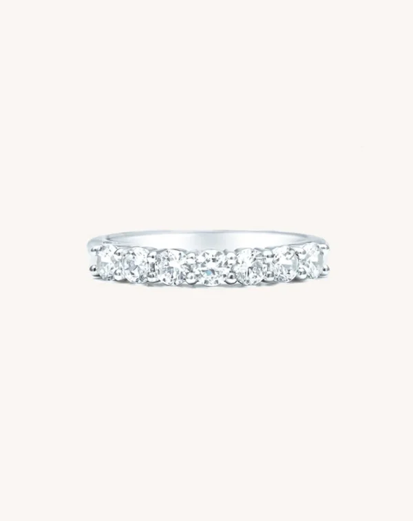 A round diamond symbolises eternal love, the perfect gift for someone traditional and sincere with a classic sense of style. This seven stone piece features the Celebration Diamonds signature low setting making it an ideal stacking ring. Shown in platinum featuring 7 round brilliant diamonds. Crafted in 18K yellow gold, 18K white gold or 18K red gold, or platinum. Lab Grown Diamond options available, get in touch for more information and pricing.