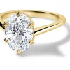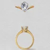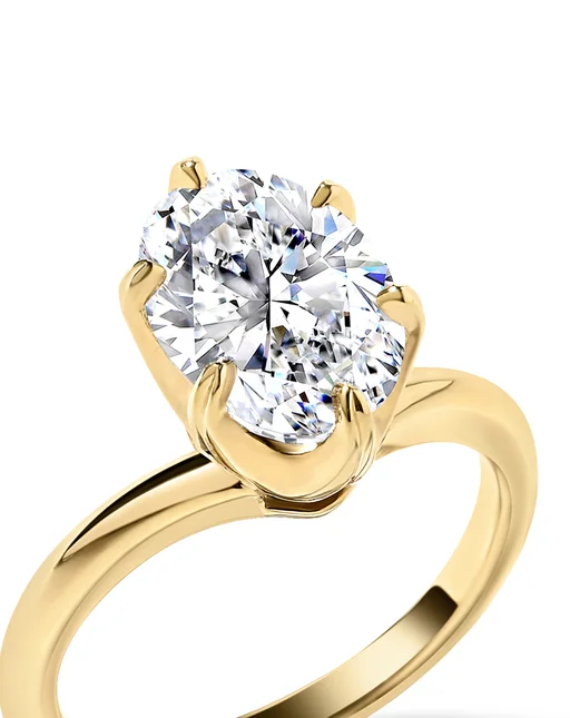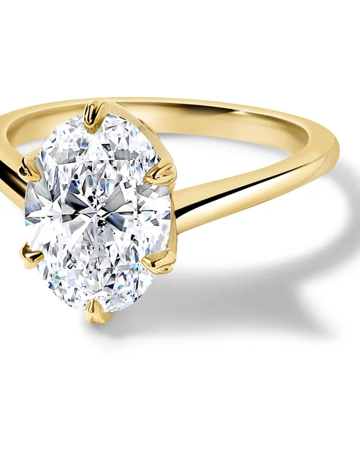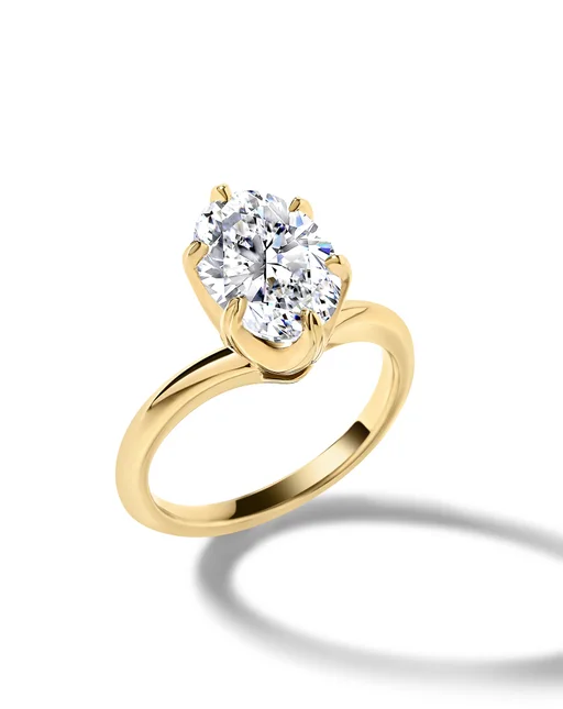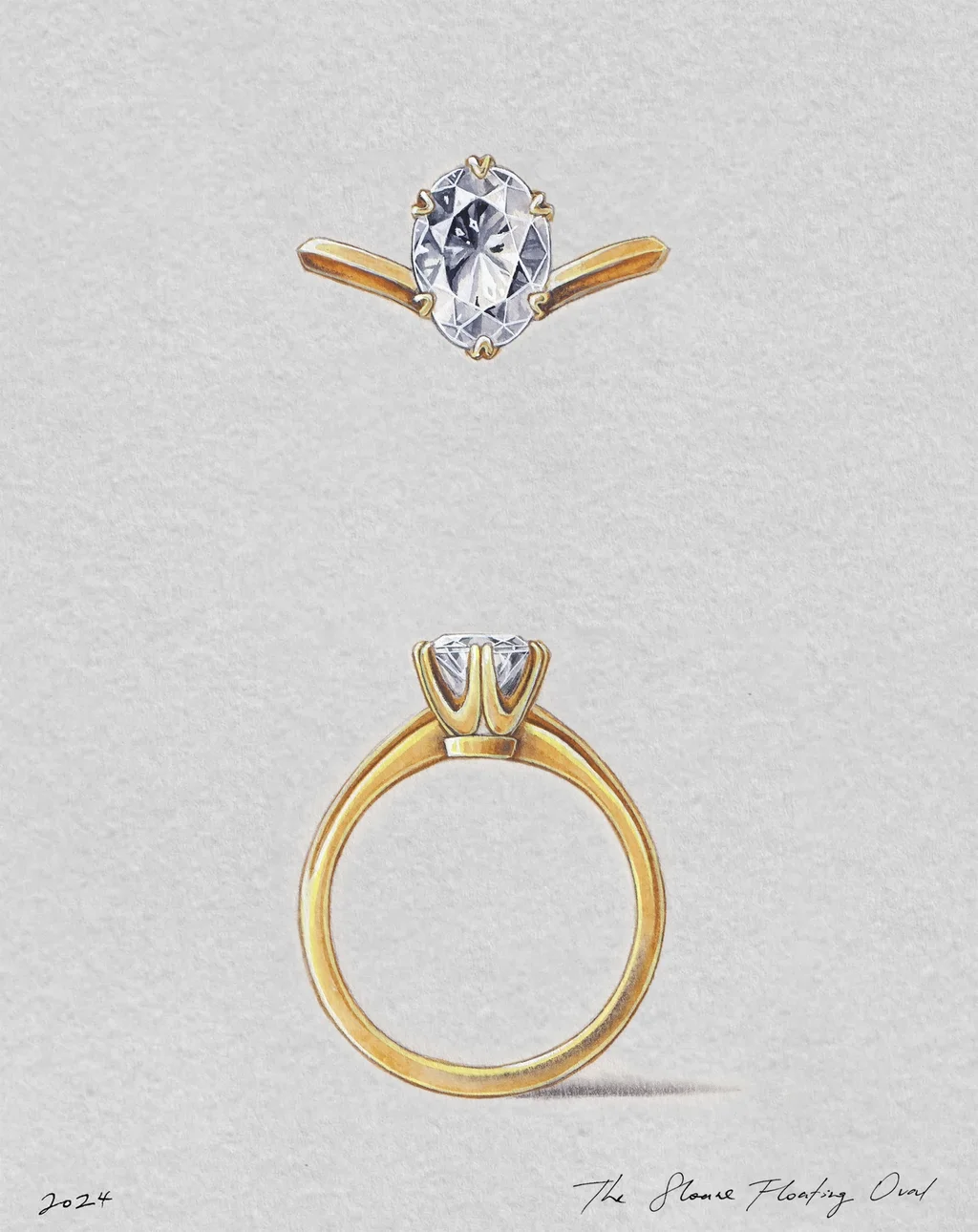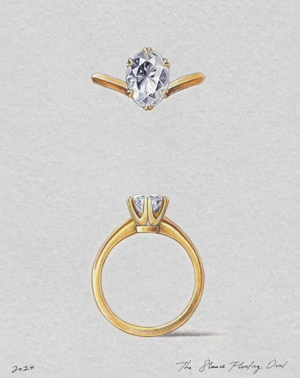 The Sloane Collection is a true embodiment of our design philosophy. A classic look from afar with precious, meaningful details at closer inspection.The intricate basket features six delicate heart-shaped claws accentuating the elegant elongated form of the oval diamond or gemstone at its centre. A knife-edge band curves into the base of the basket, offering a touch of the contemporary to a classic design.