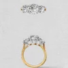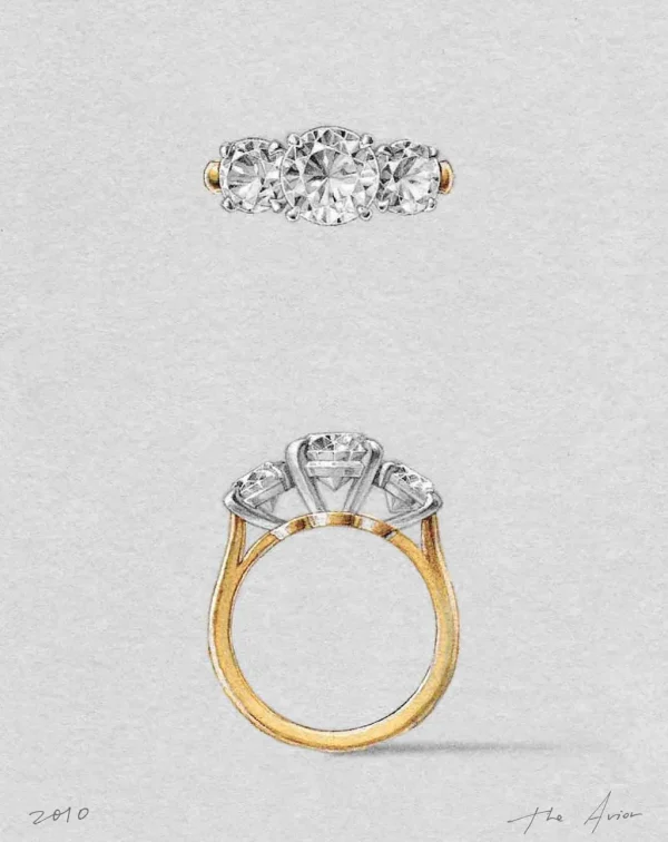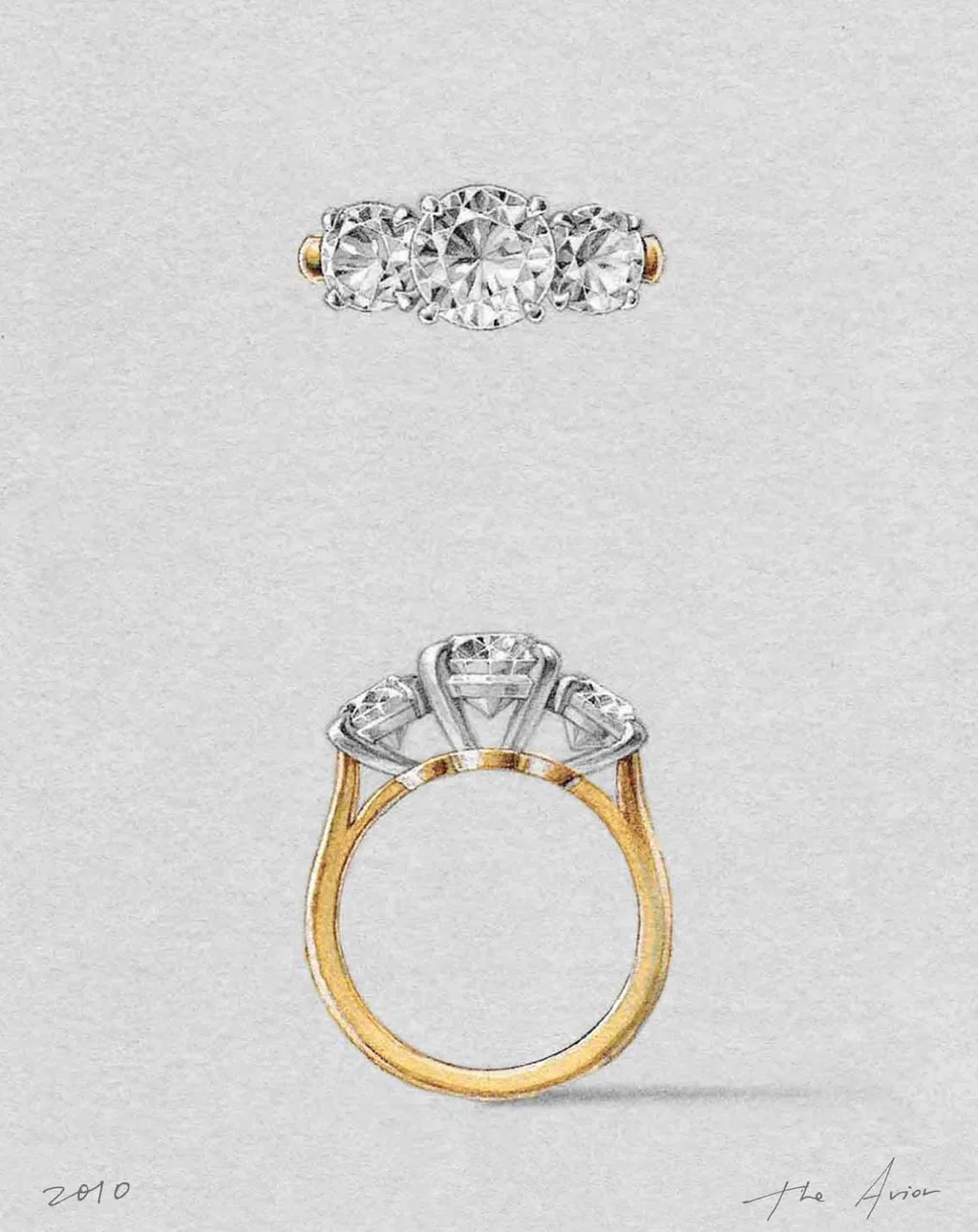 The Avior Setting is a contemporary take on a classic three-stone setting with a sleek, simple silhouette.This refined setting allows the diamonds to truly show off as they curve graciously across the finger. Four claws on each setting give a cushion shaped feel whilst delivering the brilliance of round brilliant diamonds.