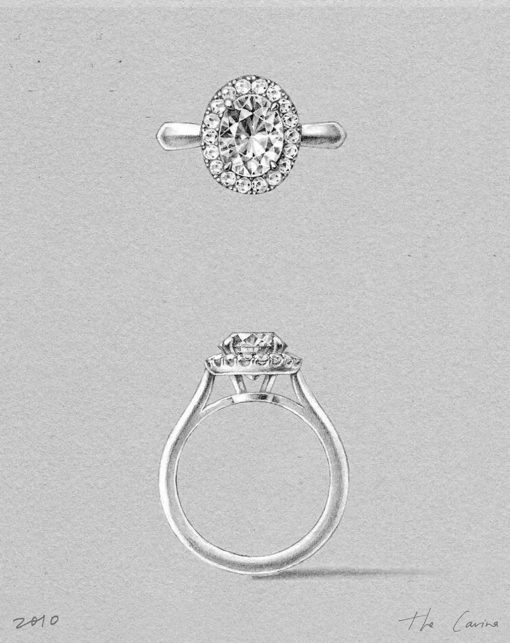 Featuring an oval-cut Diamond in Platinum, the Carina Setting provides a dazzling display with its finely scallop-set halo. Accompanied by a sleek tapered, knife-edge band, the band’s profile adds a refined elegance with a distinctive touch. The taper accentuates the presence of the oval and its delicate halo. A design for those seeking a little extra sparkle while maintaining a classic and refined look.