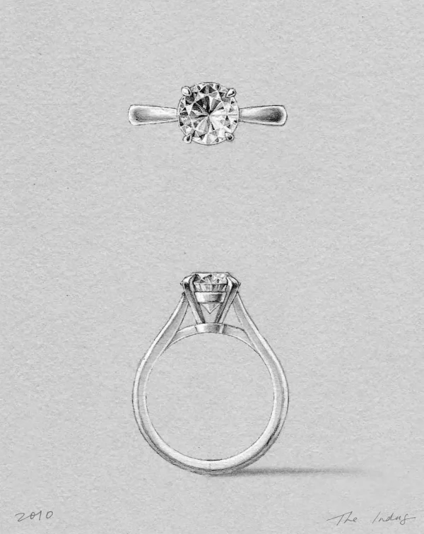 The Indus Setting is a classic take on a single solitaire with a sleek, simple silhouette.It features a fine tapered band, which allows the round brilliant centre diamond to dazzle with its 58 facets.