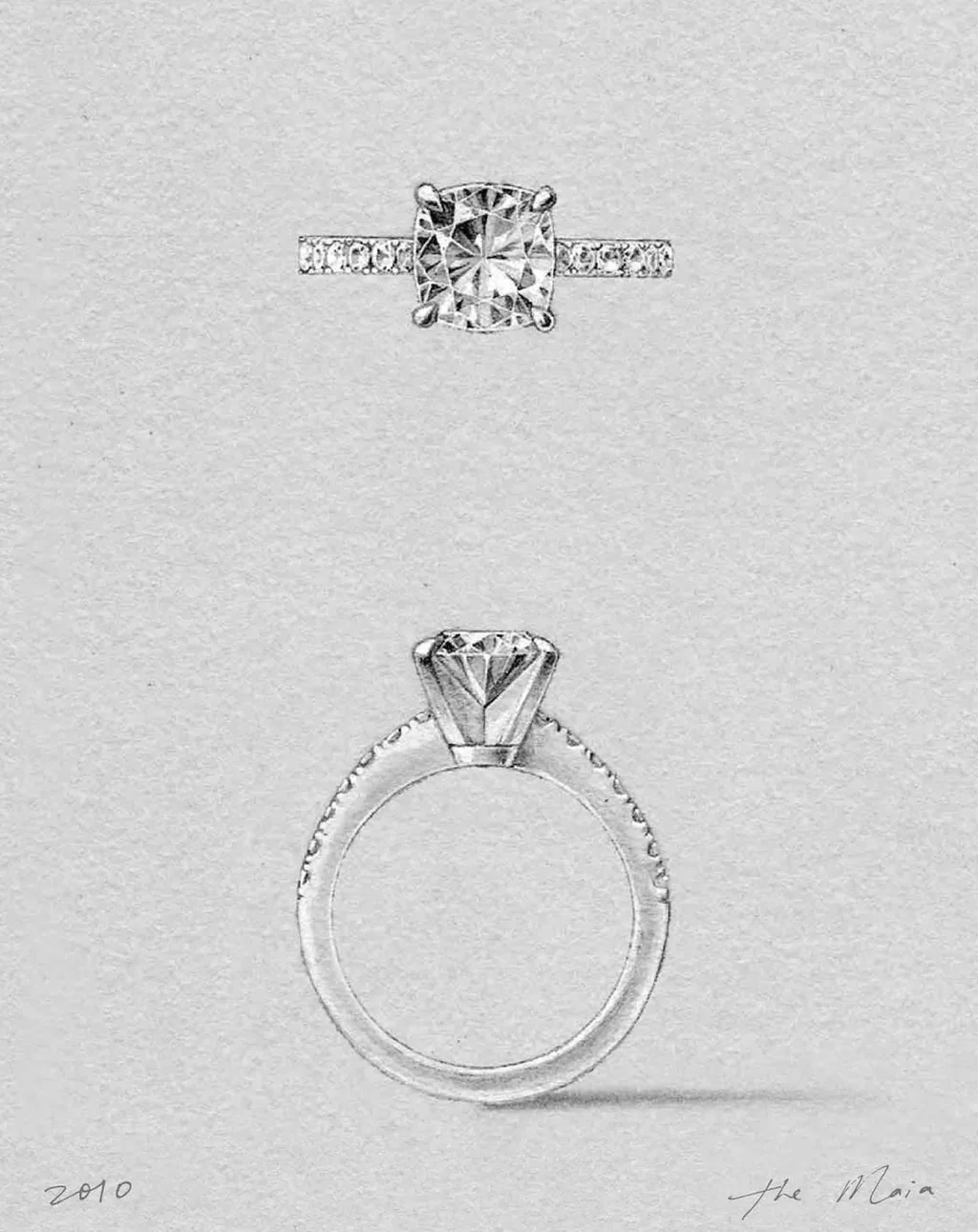 The Maia Setting is a classic solitaire, softened with the curves of a cushion-shape Diamond in Platinum.The scallop-set Diamond in Platinum band offers an old-world sentiment, while the ‘V’ style basket setting for the centre Diamond in Platinum gives a nod to the modern with its straighter lines and bold silhouette.